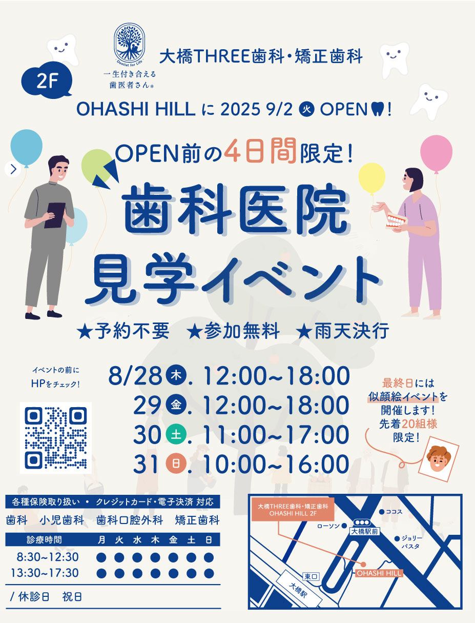【大橋THREE歯科・矯正歯科】8月開催!オープン前の院内見学イベントのお知らせ【OHASHI HILL 】