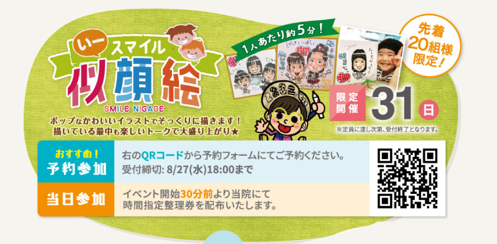 - 内容:プロのイラストレーターによる「スマイル似顔絵」体験。楽しい時間と記念の一枚をお持ち帰りいただけます。